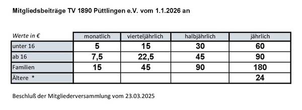 | ab 16 Jahre | 5,00 € | 15,00 € | 30,00 € | 60,00 € |